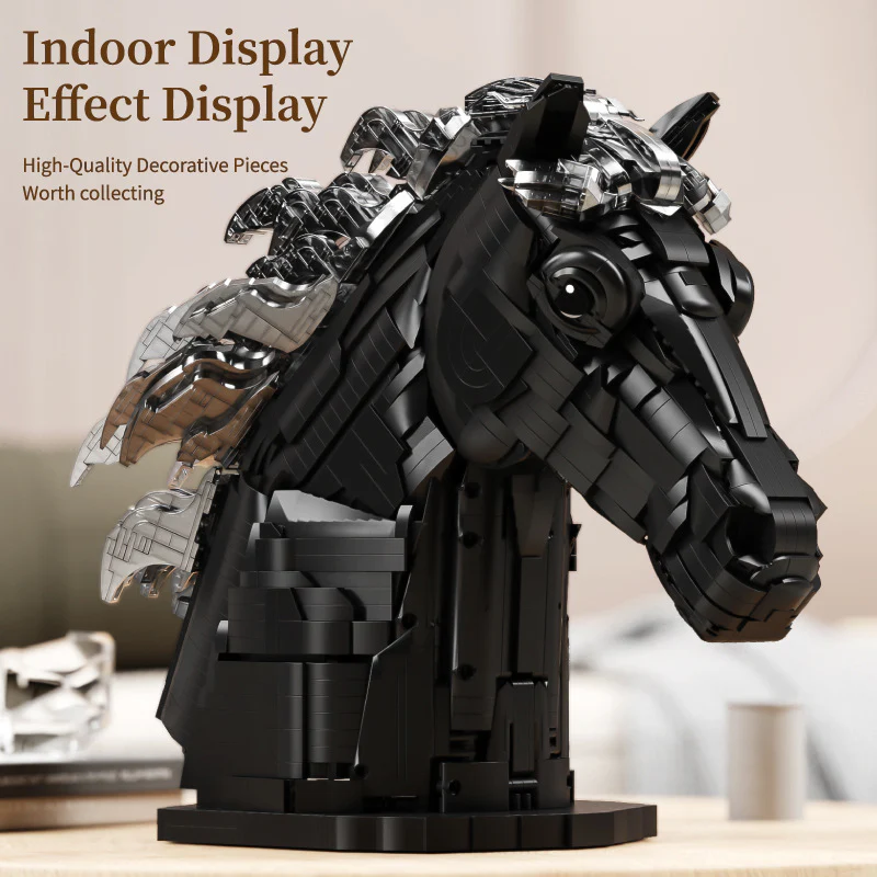 Create a striking statement piece with the Elegant Black Horse Head Sculpture building set. This impressive 3091-piece display model captures the powerful and graceful presence of a horse in a modern sculptural design. Featuring layered detailing, flowing mane elements, and a solid display base, this build delivers both artistic elegance and architectural precision.