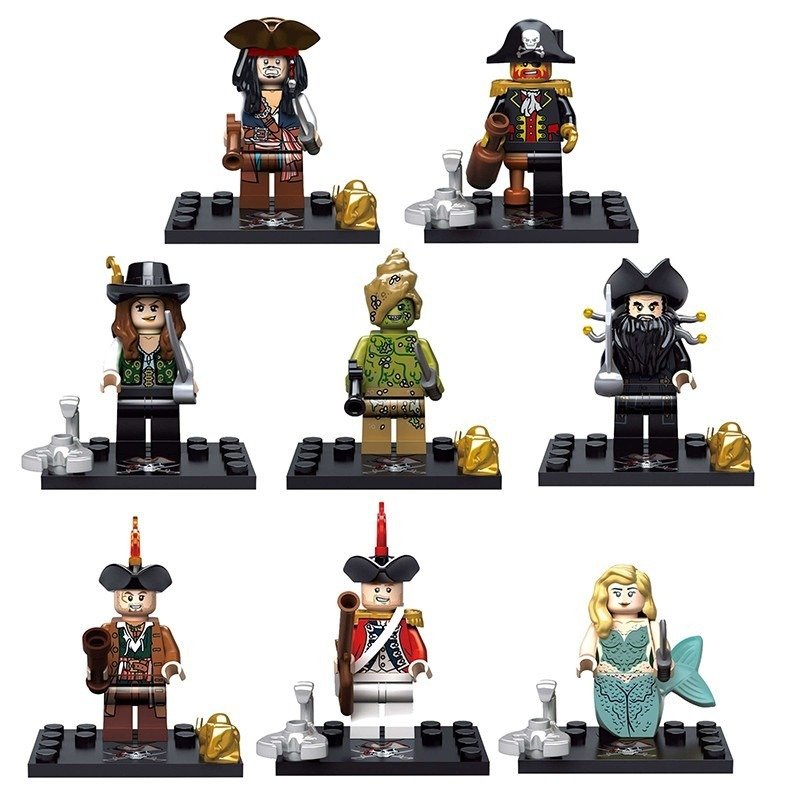 Set of 8pcs, Angelica, Blackbeard, Captain Brickbeard, Captain Jack Sparrow, Hadras, King George's Officer, Mermaid, Scrum
